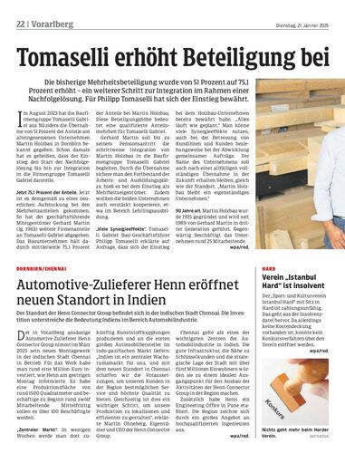 Die bisherige Mehrheitsbeteiligung wurde von 51 Prozent auf 75,1 Prozent erhöht – ein weiterer Schritt zur Integration im Rahmen einer Nachfolgelösung. Für Philipp Tomaselli hat sich der Einstieg bewährt.