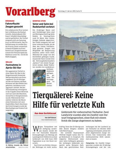 Geldstrafe für vorbestraften Tierhalter. Zwei Landwirte wurden aber im Zweifel vom Vorwurf freigesprochen, einer Kuh mit einem Strick die Zunge abgetrennt zu haben.