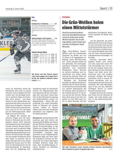 Austria Lustenau präsentiert mit dem Mittelstürmer Junior Eyamba den ersten Wintertransfer. Der 23-Jährige spielte zuletzt beim polnischen Erstligisten Slask Wroclaw.