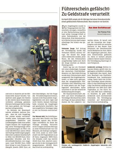 Im April 2025 zeigte ein 61-Jähriger bei einer Grenzkontrolle einen gefälschten Führerschein. Nun stand er vor Gericht.
