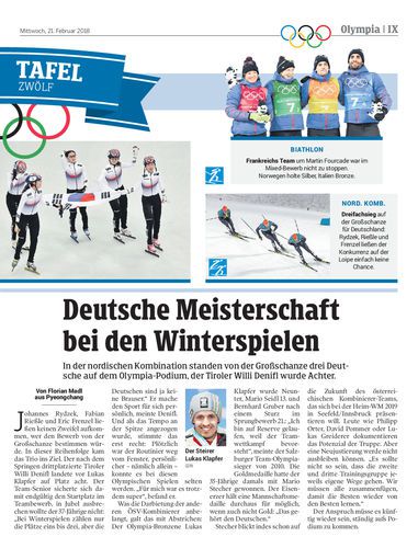 In der nordischen Kombination standen von der Großschanze drei Deutsche auf dem Olympia-Podium, der Tiroler Willi Denifl wurde Achter.