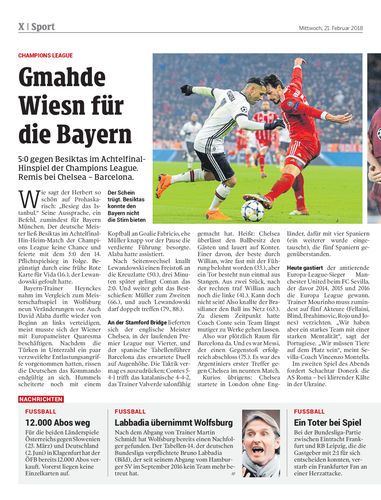 5:0 gegen Besiktas im Achtelfinal-Hinspiel der Champions League. Remis bei Chelsea – Barcelona.