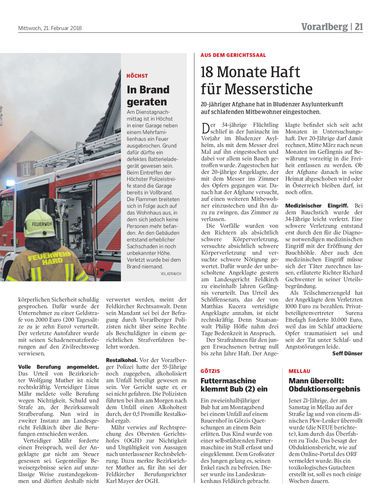 20-jähriger Afghane hat in Bludenzer Asylunterkunft