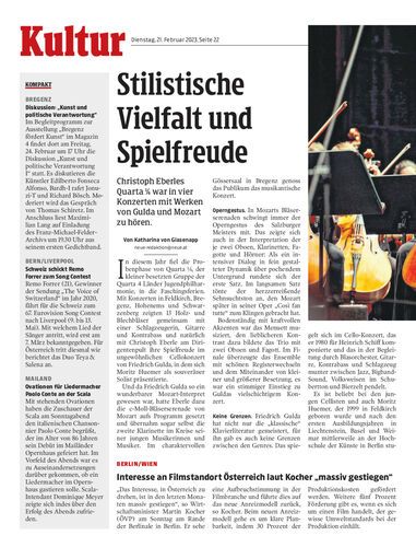 Christoph Eberles Quarta ¼ war in vier Konzerten mit Werken von Gulda und Mozart zu hören.