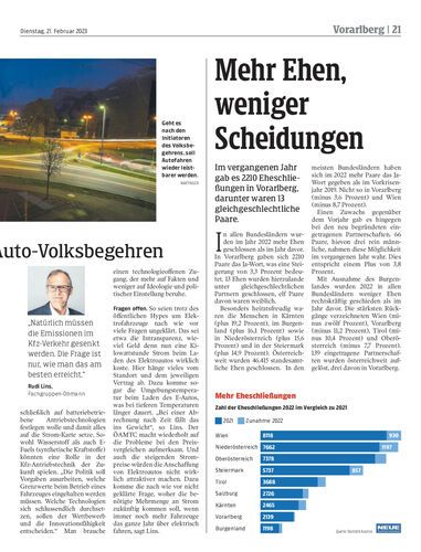 Im vergangenen Jahr gab es 2210 Eheschließungen in Vorarlberg, darunter waren 13 gleichgeschlechtliche Paare.