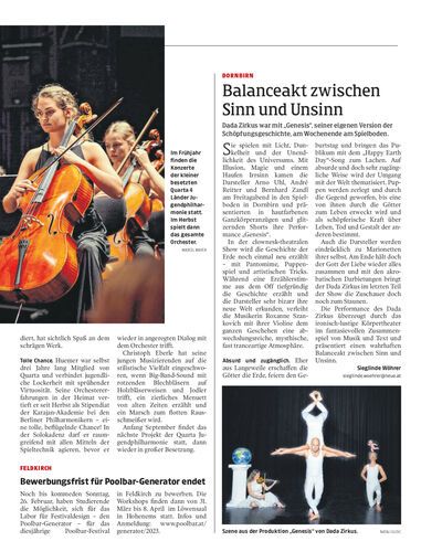 Dada Zirkus war mit „Genesis“, seiner eigenen Version der Schöpfungsgeschichte, am Wochenende am Spielboden.
