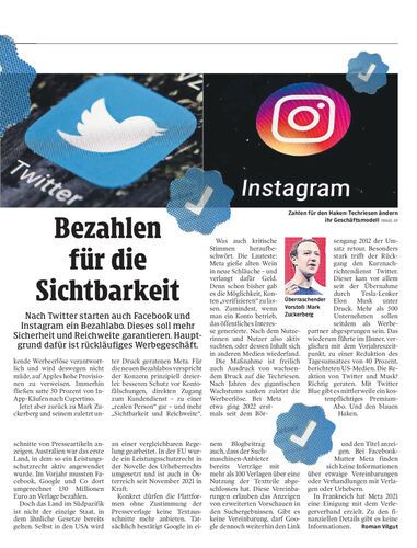 Nach Twitter starten auch Facebook und Instagram ein Bezahlabo. Dieses soll mehr Sicherheit und Reichweite garantieren. Hauptgrund dafür ist rückläufiges Werbegeschäft.