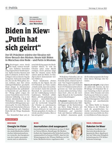 Der US-Präsident stärkte der Ukraine mit Kiew-Besuch den Rücken. Heute hält Biden in Warschau eine Rede – und Putin in Moskau.