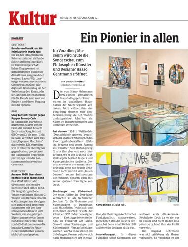 Im Vorarlberg Museum wird heute die Sonderschau zum Philosophen, Künstler und Designer Hasso Gehrmann eröffnet.