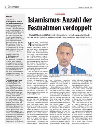 Allein 2024 gab es 215 Taten mit islamistischet beziehungsweise jihadistischer Motivlage. DSN plädiert für Drei-Stufen-Modell zur Gefahrenabwehr.