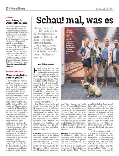 „Jung, frech und frisch“, ist das Motto der Frühjahrsausstellung Schau! auf dem Dornbirner Messegelände. Vom 6. bis 9. April wird der Klassiker zum ersten Mal die neuen Hallen bespielen.