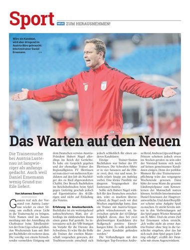 Die Trainersuche bei Austria Lustenau ist langwieriger als anfangs gedacht. Auch weil Daniel Ernemann wenig Grund zur Eile liefert.