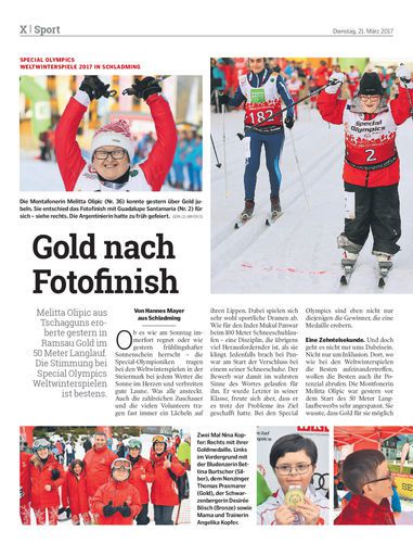 Melitta Olipic aus Tschagguns eroberte gestern in Ramsau Gold im 50 Meter Langlauf. Die Stimmung bei Special Olympics Weltwinterspielen ist bestens.