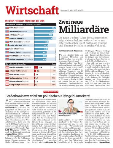 Die neue „Forbes“-Liste der Superreichen zeigt viele altbekannte Gesichter – aus österreichischer Sicht mit Georg Stumpf und Thomas Prinzhorn auch zwei neue.