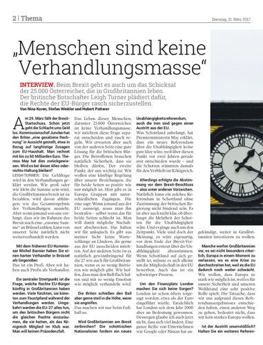 Beim Brexit geht es auch um das Schicksal der 25.000 Österreicher, die in Großbritannien leben. Der britische Botschafter Leigh Turner plädiert dafür, die Rechte der EU-Bürger rasch sicherzustellen. Von Nina Koren, Stefan Winkler und Hubert Patterer
