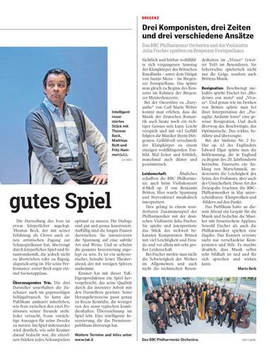 Das BBC Philharmonic Orchestra und die Violinistin Julia Fischer spielten im Bregenzer Festspielhaus.