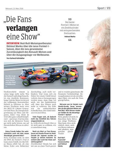 Red-Bull-Motorsportberater Helmut Marko über die neue Formel-1-Saison, über die neu gewonnene Zuverlässigkeit des Renault-Motors und über die Ausgangslage vor Melbourne. Von Gerhard Hofstädter