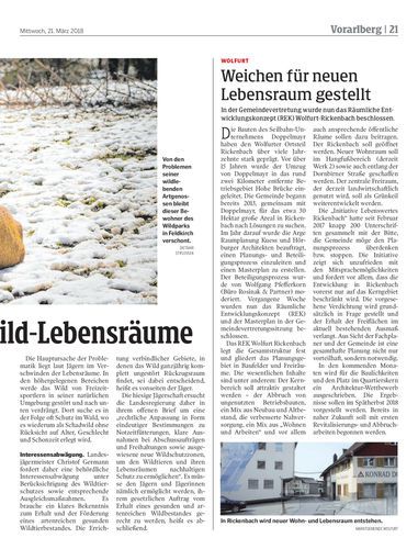 In der Gemeindevertretung wurde nun das Räumliche Entwicklungskonzept (REK) Wolfurt-Rickenbach beschlossen.