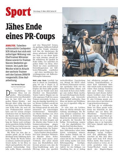 Analyse. Tabellenschlusslicht Cashpoint SCR Altach hat sich mit sofortiger Wrkung von Cheftrainer Miroslav Klose sowie Co-Trainer Slaven Skeledzic getrennt. Im Laufe der Woche wird in Altach der sechste Trainer seit der Saison 2018/19 vorgestellt. Eine Aufarbeitung.
