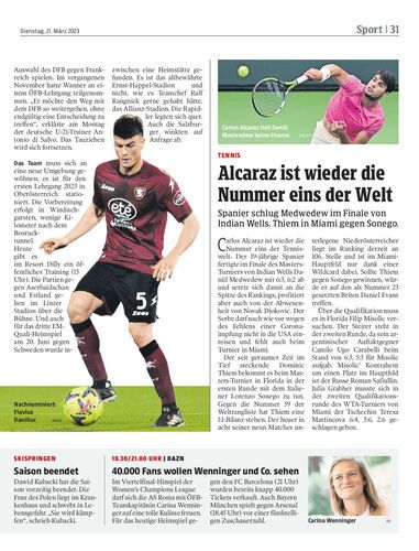 Spanier schlug Medwedew im Finale von Indian Wells. Thiem in Miami gegen Sonego.