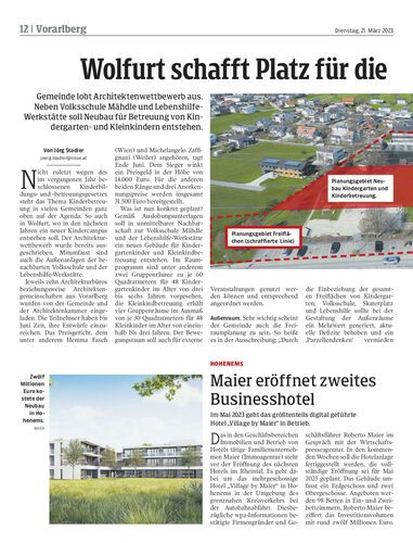 Gemeinde lobt Architektenwettbewerb aus. Neben Volksschule Mähdle und Lebenshilfe-Werkstätte soll Neubau für Betreuung von Kindergarten- und Kleinkindern entstehen.