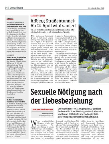 Unbescholtener 19-Jähriger griff 23-jähriger Ex-Freundin über Kleidung an Genitalbereich und Brust: Geldstrafe und bedingte Haftstrafe wegen geschlechtlicher Nötigung.