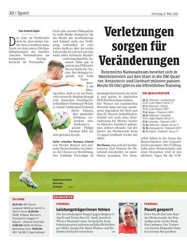 Österreichs Nationalteam bereitet sich in Oberösterreich auf den Start in die EM-Quali vor. Arnautovic und Lienhart müssen passen. Heute (15 Uhr) gibt es ein öffentliches Training.