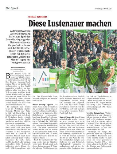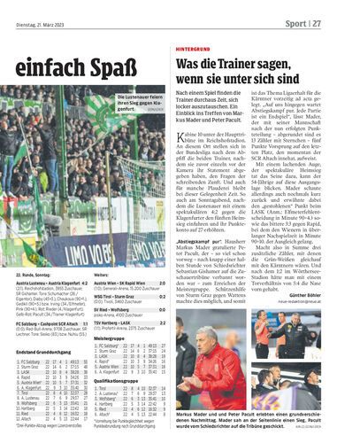 Aufsteiger Austria Lustenau bezwang im letzten Spiel des Grunddurchgangs den Namensvetter aus Klagenfurt zu Hause mit 4:2. Die Kärntner lösten trotzdem ihr Ticket für die Meistergruppe, welche die Mader-Truppe nur knapp verpasste.