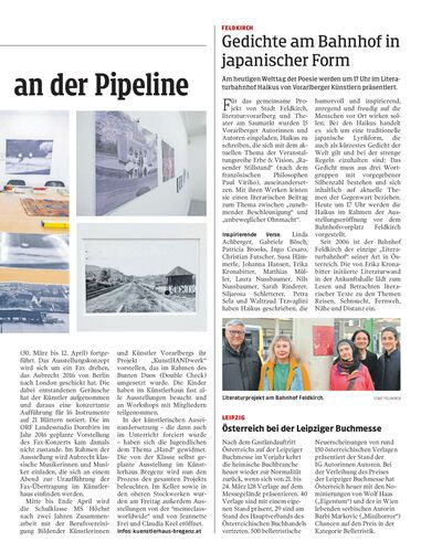 Am heutigen Welttag der Poesie werden um 17 Uhr im Literaturbahnhof Haikus von Vorarlberger Künstlern präsentiert.