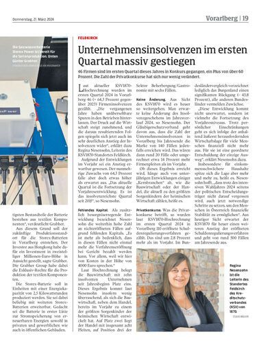 46 Firmen sind im ersten Quartal dieses Jahres in Konkurs gegangen, ein Plus von über 60 Prozent. Die Zahl der Privatkonkurse hat sich nur wenig verändert.