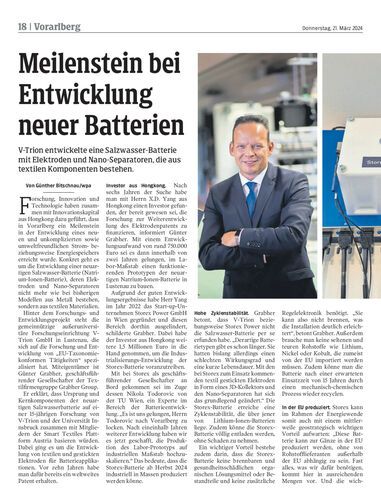 V-Trion entwickelte eine Salzwasser-Batterie mit Elektroden und Nano-Separatoren, die aus textilen Komponenten bestehen.