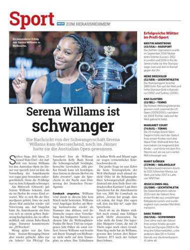 Die Nachricht von der Schwangerschaft Serena Willams kam überraschend, noch im Jänner hatte sie die Australian Open gewonnen.