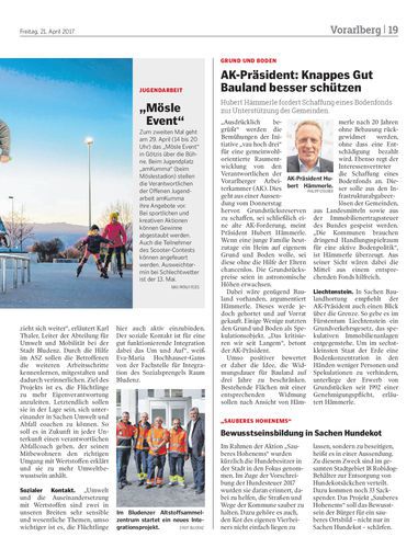Hubert Hämmerle fordert Schaffung eines Bodenfonds zur Unterstützung der Gemeinden.