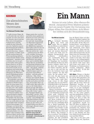 Reisen ist sein Leben. Aber ebenso die Musik. Jazzpianist Peter Madsen präsentiert ein neues Projekt: Die Vertonung von Edgar-Allan-Poe-Geschichten. Acht Musiker stellen sich der Herausforderung.