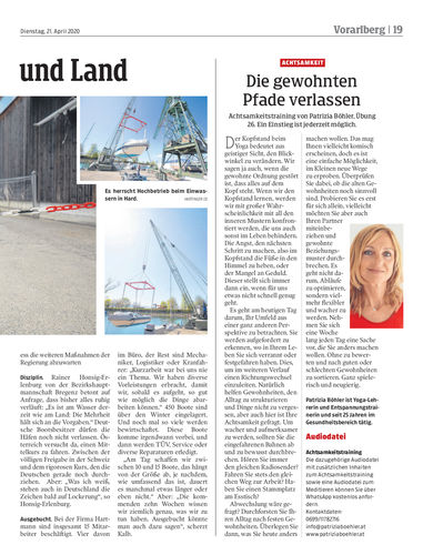 Achtsamkeitstraining von Patrizia Böhler, Übung 26. Ein Einstieg ist jederzeit möglich.