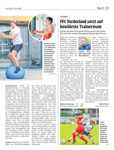 Leandro Simonelli hat seinen Vertrag um ein Jahr verlängert. Auch die anderen Übungsleiter bleiben dem FFC treu.
