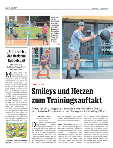 Philipp Oswald schlug gestern erstmals wieder Tennisbälle über das Netz. Auch das Olympiazentrum hat für ausgewählte Sportler geöffnet.