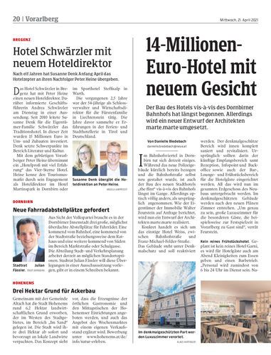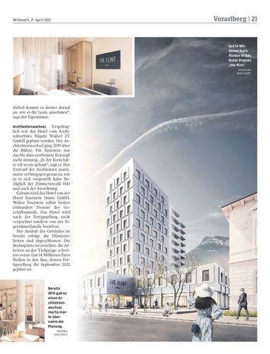 Der Bau des Hotels vis-à-vis des Dornbirner Bahnhofs hat längst begonnen. Allerdings wird ein neuer Entwurf der Architekten marte.marte umgesetzt.