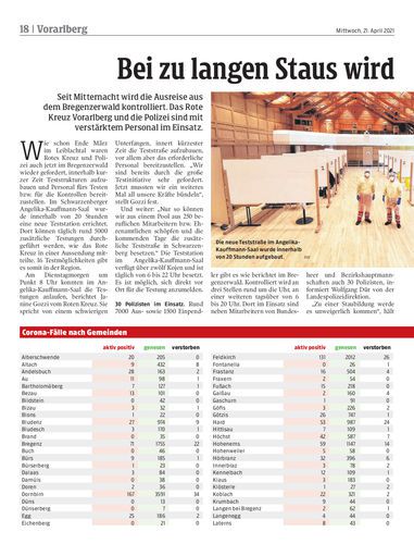 Seit Mitternacht wird die Ausreise aus dem Bregenzerwald kontrolliert. Das Rote Kreuz Vorarlberg und die Polizei sind mit verstärktem Personal im Einsatz.
