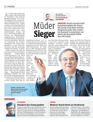 analyse. Armin Laschet wird Kanzlerkandidat der Union. Die Suche nach dem rechten Programm geht aber weiter. Im Ausland verunsichert vor allem die Russland-Politk des CDU-Chefs.