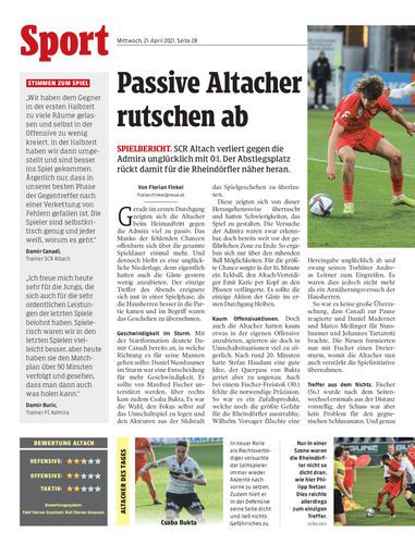 Spielbericht. SCR Altach verliert gegen die Admira unglücklich mit 0:1. Der Abstiegsplatz rückt damit für die Rheindörfler näher heran.