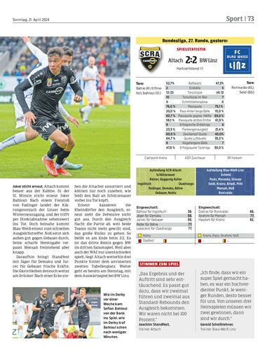 Spielbericht. Der SCR Altach und BW Linz trennen sich 2:2. Weil die Rheindörfler zweimal eine Führung verspielen, gibt es am Ende das sechste Remis aus den letzten sieben Partien.
