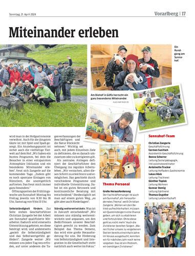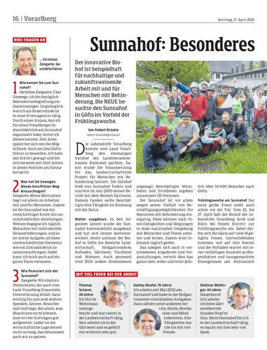 Der innovative Biohof ist beispielhaft für nachhaltige und zukunftsweisende Arbeit mit und für Menschen mit Behinderung. Die NEUE besuchte den Sunnahof in Göfis im Vorfeld der Frühlingswoche.