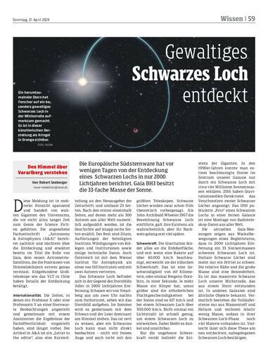 Die Europäische Südsternware hat vor wenigen Tagen von der Entdeckung eines Schwarzen Lochs in nur 2000 Lichtjahren berichtet. Gaia BH3 besitzt die 33-fache Masse der Sonne.