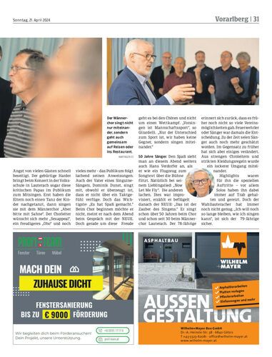 Den Chören fehlen männliche Nachwuchsstimmen. Besonders Männerchöre bekommen das zu spüren. Durch diverse Aktionen wirbt der Männerchor Lauterach neue Mitglieder.