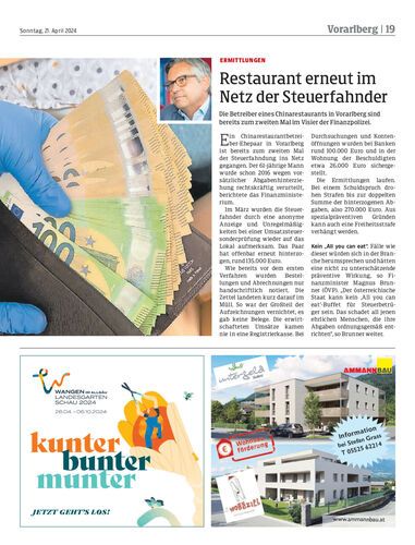 Die Betreiber eines Chinarestaurants in Vorarlberg sind bereits zum zweiten Mal im Visier der Finanzpolizei.