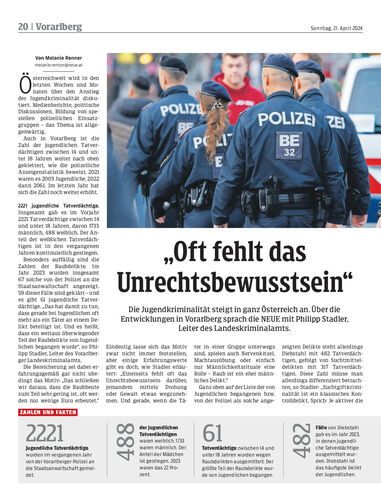 Die Jugendkriminalität steigt in ganz Österreich an. Über die Entwicklungen in Vorarlberg sprach die NEUE mit Philipp Stadler, Leiter des Landeskriminalamts.