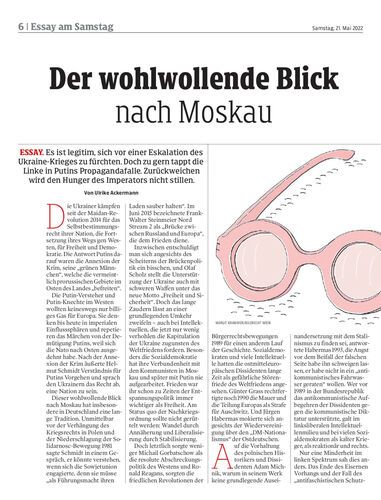 ESSAY. Es ist legitim, sich vor einer Eskalation des Ukraine-Krieges zu fürchten. Doch zu gern tappt die Linke in Putins Propagandafalle. Zurückweichen wird den Hunger des Imperators nicht stillen. Von Ulrike Ackermann