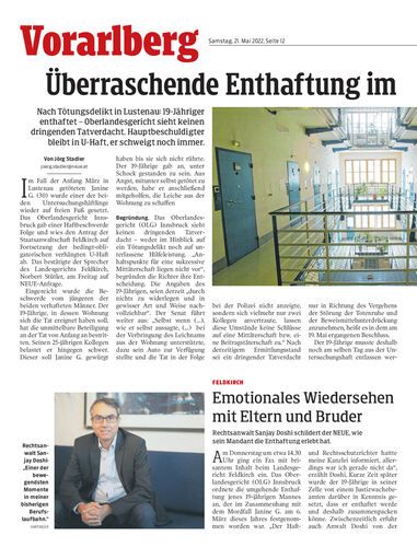 Nach Tötungsdelikt in Lustenau: 19-Jähriger enthaftet – Oberlandesgericht sieht keinen dringenden Tatverdacht. Hauptbeschuldigter bleibt in U-Haft, er schweigt noch immer.