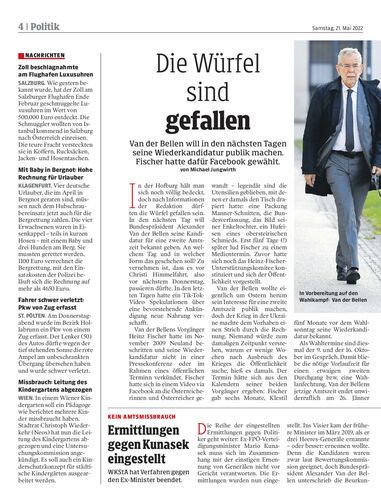 Van der Bellen will in den nächsten Tagen seine Wiederkandidatur publik machen. Fischer hatte dafür Facebook gewählt. von Michael Jungwirth